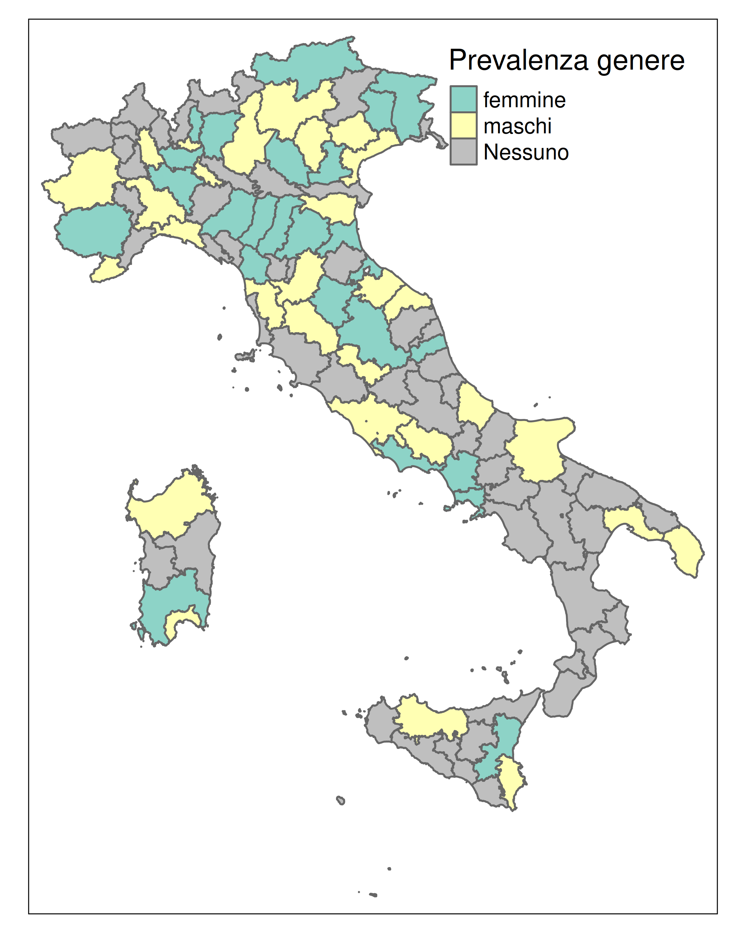 Queste tabelle riportano la distribuzione per genere ed età, e la prevalenza di genere per ciascuna provincia.
