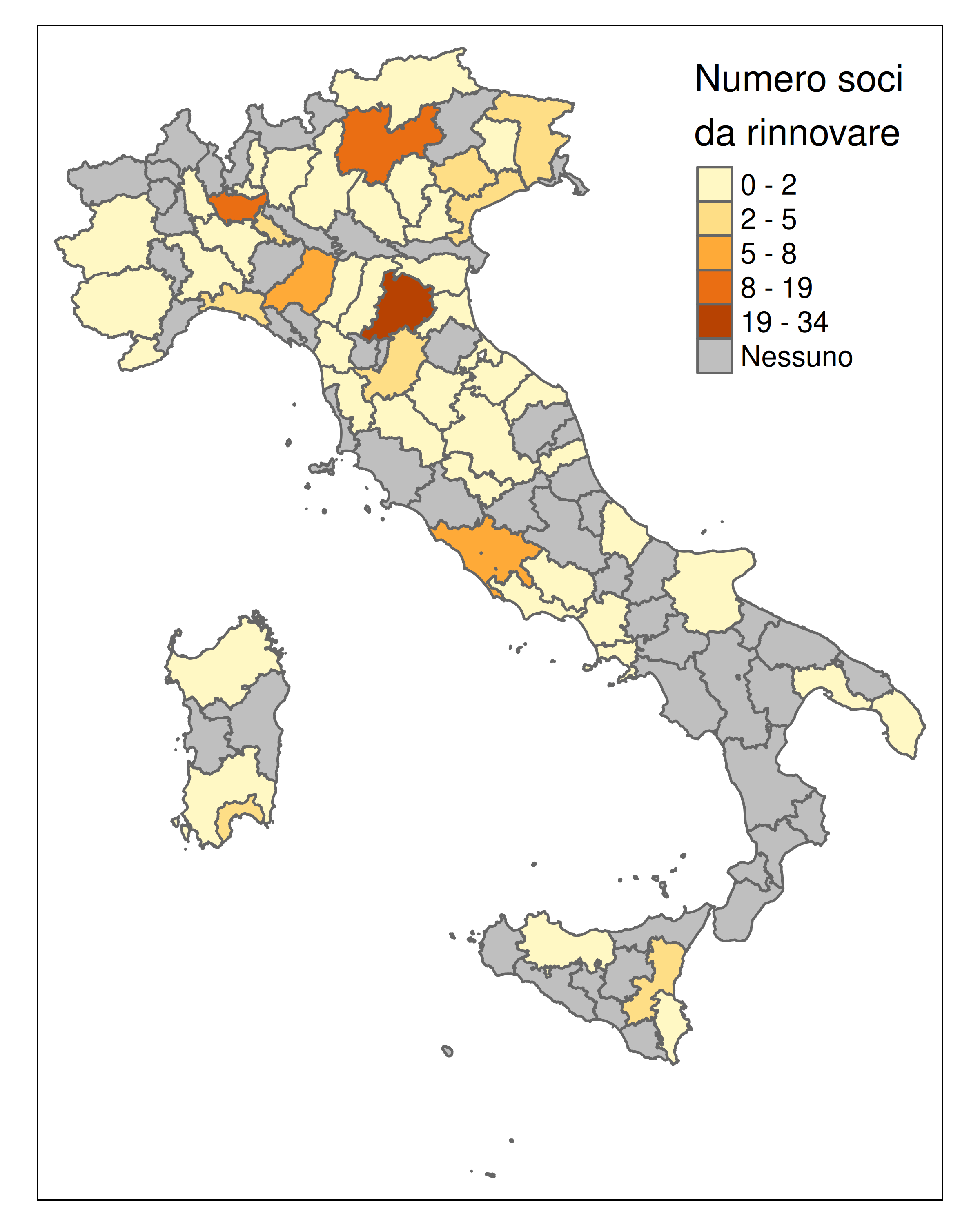 - A livello nazionale, i soci sono distribuiti in 60 province, di cui: